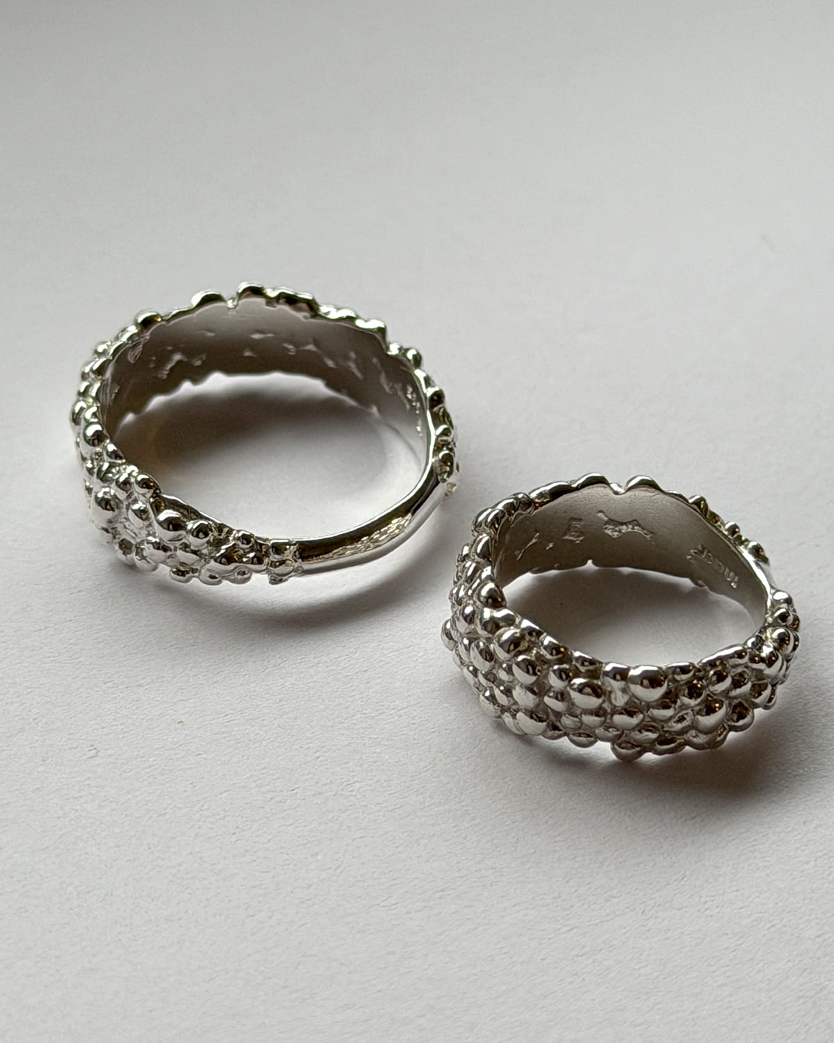 The Caviar Ring has been made using the lost-wax method - its prototype has been created in jewellery wax (partly by carving it, partly by melting it) and then it has been cast in silver.